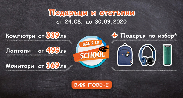 От 24.08.2020г. в 12:00ч. до 23:59ч. на 30.09.2020г. „ПИК Компютър” ООД (PIC.bg) провежда промоционална кампания под името „Back to School“ на www.pic.bg за територията на Република България. Специалната оферта важи при онлайн поръчка от www.Pic.bg или при покупка от физическите магазини на Pic.bg в градовете Пловдив, София или Бургас. В Кампанията участват следните продукти: