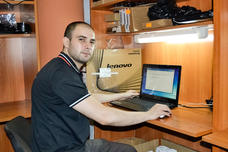 Тениската на Батман не е случайна! Ако имате нужда от помощ при покупка на нов компютър или се чудите как да забързате старата машина, колегата Лъчезар Добрев ще се притече на помощ. За да стигнете до него обаче, първо трябва да преминете през "момичето отпред" - Христина Борисова - винаги усмихната и лъчезарна, тя ще приеме вашия компютър за ремонт, колкото и да е зле положението. А ако ремонтът ви се забави много /рядко срещано явление, но все пак понякога се случва/, вече ще знаете кого да потърсите.