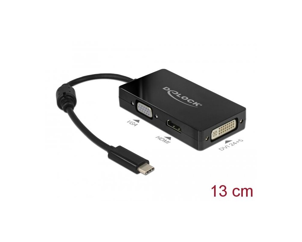 Адаптери 3 в 1 Delock 63925 USB-C мъжко - VGA DVI HDMI женско, Черен DELOCK-63925