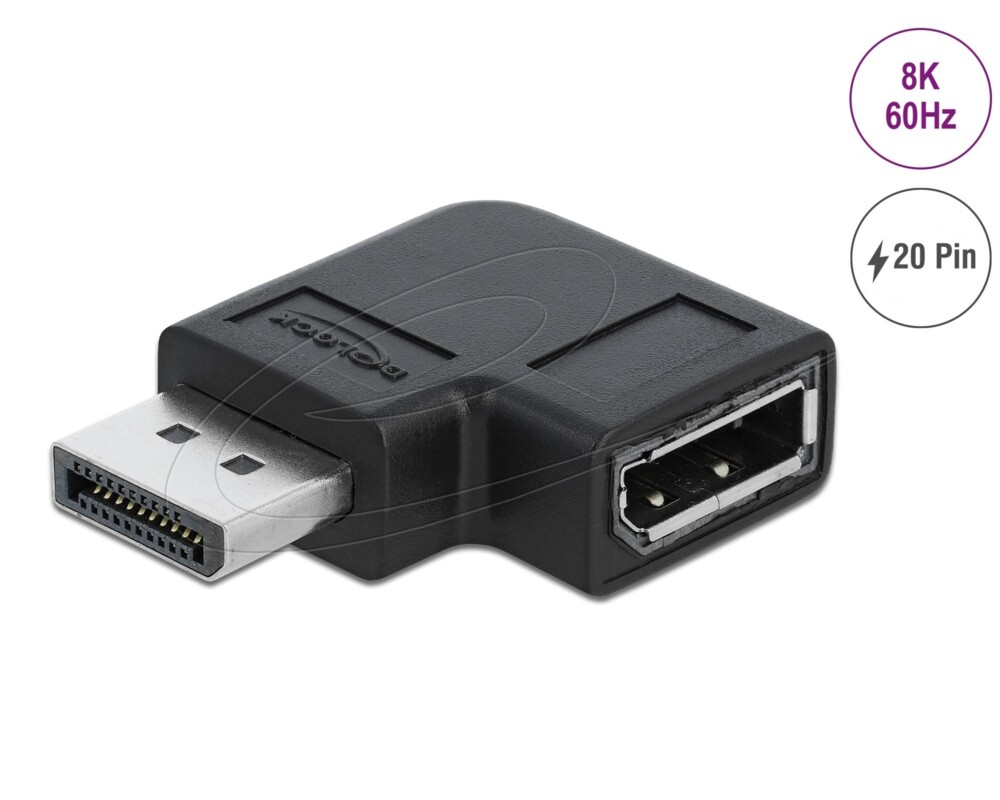 - Delock 90° DisplayPort 1.4 , 20 pin мъжко (male) към DisplayPort 1.4 20 pin женско (female), 8К 7680 x 4320 @ 60 Hz with DSC support (ID: 875477)