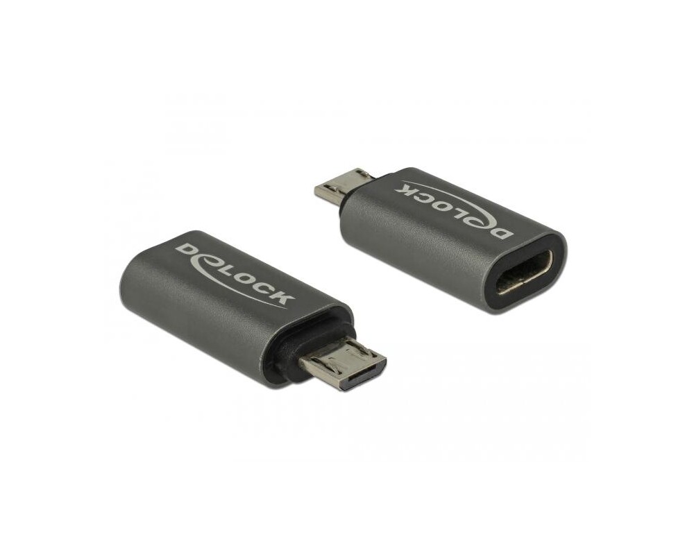 Адаптери Delock, USB 2.0, Micro-B мъжко - USB Type-C женско, Черен DELOCK-65927