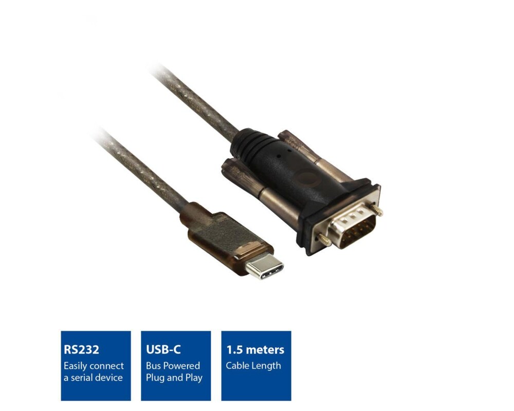 Адаптери RAID ACT AC6002, USB-C мъжко - RS232 мъжко, 9 pin, 1.5 м, Черен EWENT-ACT-AC6002