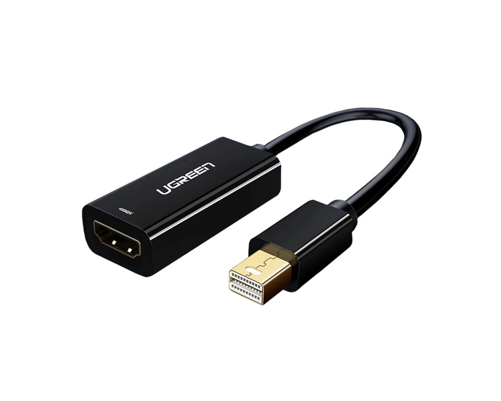 Ugreen MD112 10461 адаптер с mini DisplayPort (мъжки) и HDMI (женски) конектори с Full HD 1080p резолюция на бял фон