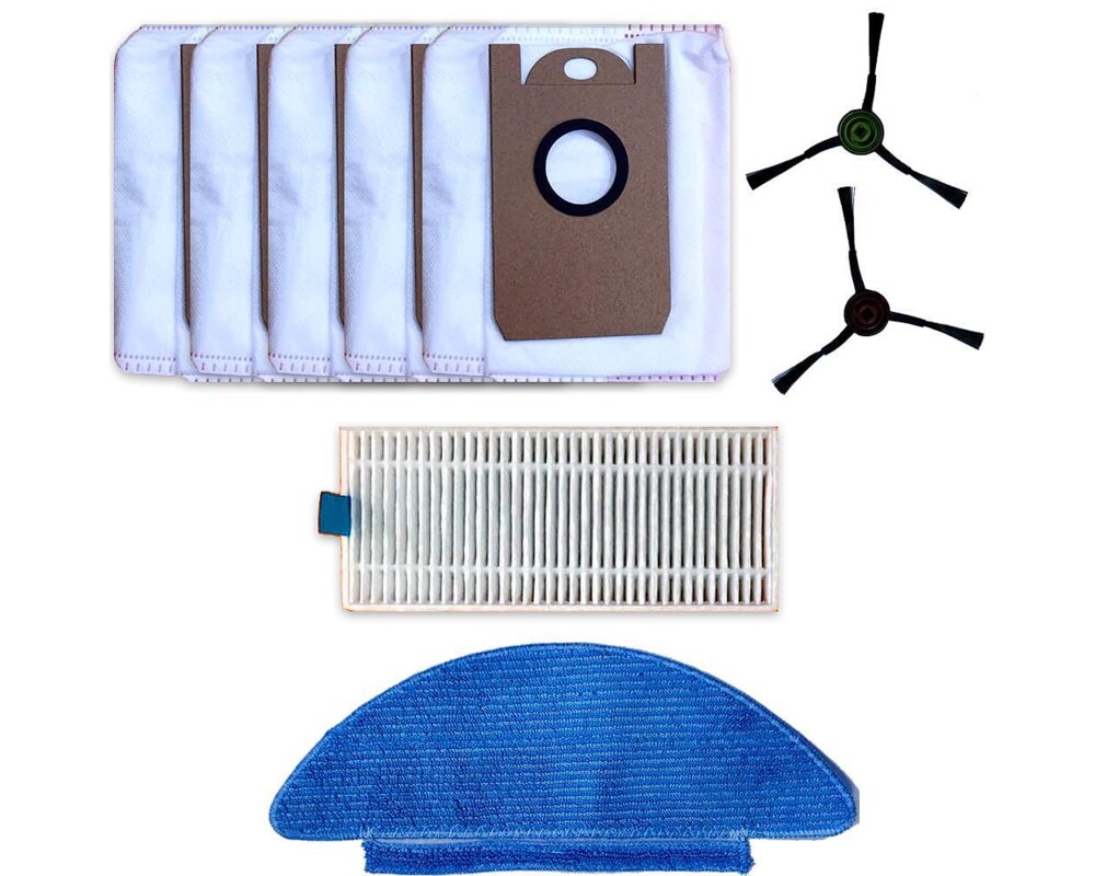 Комплектът съдържа: - 5 броя торбички - 1 комплект странични четки - 1 HEPA филтър - 1 моп |