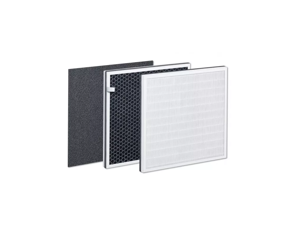 В комплекта има предварителен филтър и комбиниран филтър (ЕРА + активен въглен). Подходящ за употреба с пречиствателя на въздух Beurer LR 500.