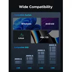 | Други характеристики | Transmission Rate: 20Gbps; Compatible with Thunderbolt 4/3, up to 10Gbps; Supported Capacity: 8TB; Built-in Cooling Fan; Data Cable USB-C to USB-C/A, 0.3m Length, PD100W; Material: Aluminium Alloy |