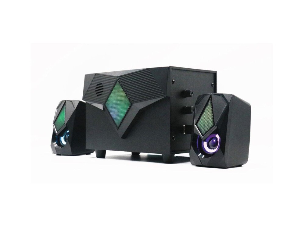 Звукова система 2.1 с подсветка, два сателита и един субуфер