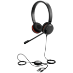 Слушалките Jabra Evolve 20 Stereo MS USB-C/A Adapter са проектирани за професионалисти, които търсят високо качество на звука и ефективно потискане на шума. Те разполагат с пасивно потискане на шума, постигнато чрез специално проектирани наушници, които намаляват височестотните звуци, като човешки гласове. Оборудвани са с микрофон с шумопотискане, който елиминира фоновия шум, осигурявайки ясна комуникация. Свързват се чрез USB-C и включва USB-A адаптер за съвместимост с различни устройства. Регулируемата лента за глава и дунапренените наушници осигуряват комфорт при продължителна употреба. Оптимизирана за Microsoft Teams, те предлагат безпроблемна интеграция с платформата. Вградените контроли позволяват лесен достъп до регулиране на звука и управление на повикванията. Jabra Evolve 20 е съвместима както с Mac, така и с PC системи.