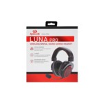 Геймърски слушалки Redragon Luna Pro – безжични (Bluetooth) и с кабел, черен цвят. Ергономичен дизайн с алуминиево шаси. Включен шумопотискащ микрофон (Ø6x2.7mm, чувствителност: -42±3dB, импеданс: 2.2KΩ). Вградени говорители с диаметър 53 mm (честотен обхват: 50Hz–20KHz, чувствителност: 111dB SPL). Виртуален 360° пространствен звук с 3 режима на работа: Stereo, Gaming и Spatial 360°.