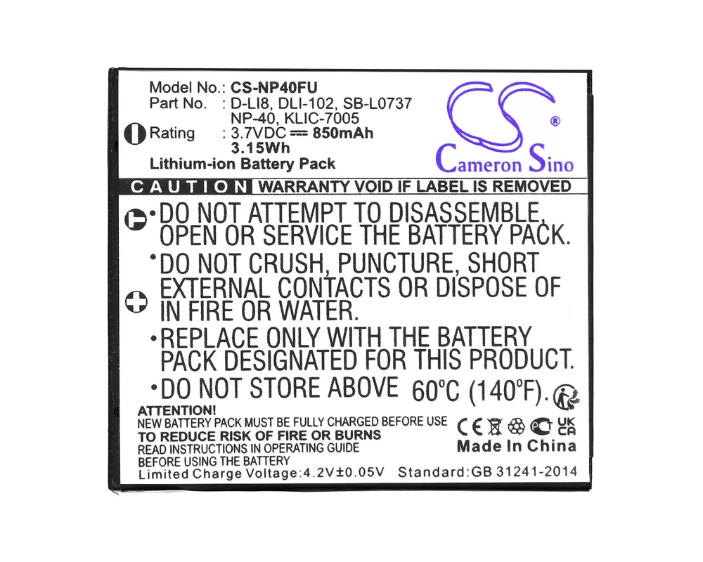 - Батерия за фотоапарат FUJI NP40 Li-Ion 3.7V, 700MAH, Cameron Sino (ID: 903957)