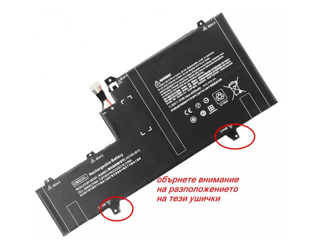 Батерията е съвместима за следните парт номера (Part Number Compatibility): HP 0M03XL 1GY29PA 1GY30PA 1GY31PA 3ICP5/55/122 863167-171 863167-1B1 863176--171 863280-855 HSN-I04C HSTNN-IB70 HSTNN-IB7O OM03057XL OM03XL Съвместимост на следните модели лаптопи HP EliteBook x360 1030 G2