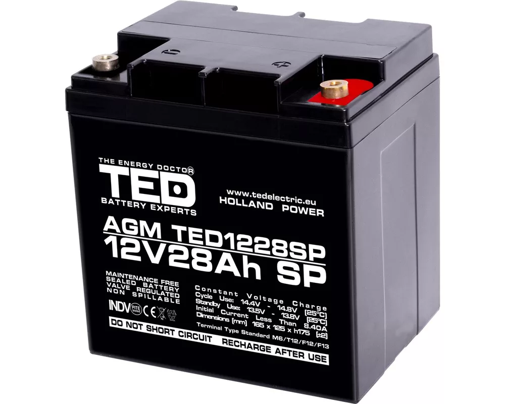 Батерия Оловна батерия AGM 12V / 26 Ah/28,5Ah - 166 / 176 / 125mm терминал F13(M5) TED ELECTRIC TED-12V-26AH