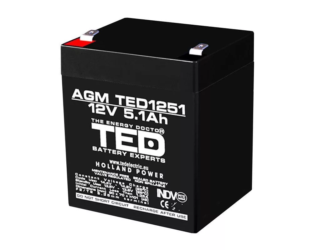 Батерия Оловна батерия TED ELECTRIC AGM, 12V, 5Ah, 90/ 70/ 10 1mm, Терминал 2 TED-12V-5AH