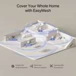 - Съвместим с EasyMesh — Съвместим с рутери и разширители на обхват EasyMesh, тази технология създава безпроблемна Mesh Wi-Fi мрежа за целия дом, като ефективно предотвратява прекъсванията и забавянията при превключване между сигналите.