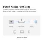 ME60X е повече от просто удължител на WiFi обхват. Свържете жичната си интернет връзка към ME60X чрез Ethernet кабел, за да го превърнете в двулентова WiFi достъпна точка.