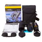 Bresser National Geographic 8x42 WP – waterproof binoculars with an 8x magnification and a high-aperture lens made of BaK-4 glass. You can drop them in water and not damage them: all optical elements are efficiently protected from water and can withstand moderate impact and falls. Multiple layers of anti-reflective coating on the lenses allow you to use the binoculars not only on a sunny day, but in bad weather and in darkness of night as well. The model is even suitable for astronomical observations. The image is always clear, sharp, and bright. The binoculars have many adjustable options: diopter and interpupillary distance, as well as focusing. Furthermore, the binoculars feature a tripod thread and can be installed onto a standard tripod.