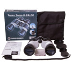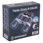 Bresser Topas 8–24x50 Binoculars with Porro prism design and high-performance fully coated optics are a universal optical device for every situation. The magnification, which ranges from 8х to 24х, allows you to observe distant objects like animals, birds, or architecture. The 50x objective lens collects enough light to use the device in bad weather conditions or at dusk. The binoculars can be mounted on a standard tripod for stationary observations. Central focusing, diopter and interpupillary distance adjustment mechanisms, and a plastic partially rubber-armored body make this device extremely convenient to use. The model is an optimal choice for a hunter, naturalist, or traveler.
