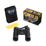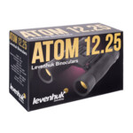Бинокълът може лесно да се регулира в съответствие със зрението на всеки потребител: има пръстен за регулиране на диоптъра в десния окуляр, разстоянието между окулярите може също да се регулира. За максимален комфорт при наблюденията бинокълът е оборудван с окуляри от мека гума. Гуменото покритие на корпуса предпазва бинокъла Levenhuk Atom 12x25 от механични удари и предотвратява навлизането на прах и замърсявания в уреда.