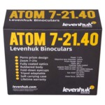 Бинокълът Levenhuk Atom 7-21x40 е висококачествен бинокъл с променливо увеличение. Препоръчваме този бинокъл на ловци и рибари, както и на любителите на страйкбола и ориентирането. Този бинокъл е подходящ също за прости астрономически наблюдения. Този бинокъл е с увеличение в диапазона от 7x до 21x. Бинокълът е изработен с призми на Поро. Оптичните елементи са изработени от стъкло BK-7 и са с цялостно покритие, което позволява да се сведе до минимум загубата на светлина. Бинокълът формира ярко изображение с точно възпроизвеждане на цветовете и отчетливи контури на обекта.