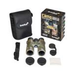 Биноклите с решетка Levenhuk Camo 10x42 са оптични уреди за ловци, рибари, туристи и всички любители на активния начин на живот. Този модел има всичко, което би могъл да предложи полевият бинокъл – голямо увеличение 10х, класически 42 mm лещи, непромокаем и изключително издръжлив корпус в камуфлажна разцветка. Освен това единият от окулярите е снабден с мащабирана решетка и далекомерна скала, които Ви дават възможност да изчислите разстоянието до целта, да определите нейната височина и да измерите хоризонталния ъгъл и ъгъла на наклона. Великолепен избор за лов!