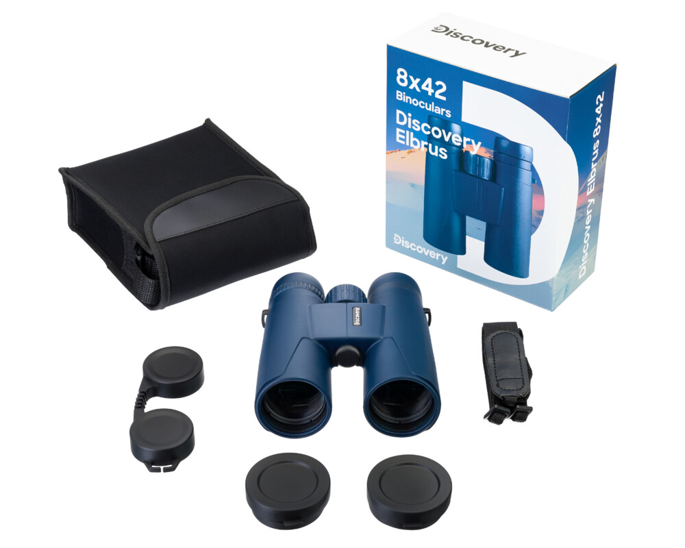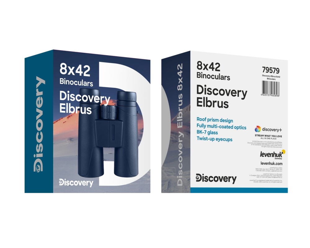 Discovery Elbrus 8x42 е мощен бинокъл с лещи с голяма апертура, което е полезно при полеви наблюдения. Бинокълът осигурява 8x увеличение и относително широко зрително поле; работи ефективно на дневна светлина и привечер и има необходимата функционалност за регулиране според нуждите на всеки потребител. Бинокълът е чудесен за лов и риболов, туризъм и наблюдение на птици.