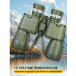 Водоустойчив. Призми на Поро. Увеличение: 10x. Диаметър на лещата на обектива: 50 mm