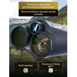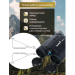 Оптичната схема на бинокъла се основава на призми на Амичи и стъкло с цялостно покритие. Оптичната система е достатъчна за извършване на наблюдения при трудни условия, когато няма достатъчно външна светлина (облачно време, при полумрак). Виждат се ясно всички фини детайли, а изображението е ярко. Далекомерът може да работи в режим на сканиране или да извършва единични измервания на разстоянието. Има също избор на приоритет за първа и втора цел. Ако например гледате обект през клоните на дърветата, настройката за приоритет на втората (далечна) цел ще гарантира игнориране на препятствията на преден план от далекомера и точно изчисление на разстоянието до фоновата цел. Приоритетът за първа (на преден план) цел е режим, който работи по подобен начин, но служи за откриване на близки цели, като игнорира фона.
