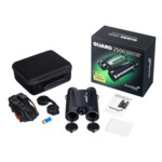Бинокълът Levenhuk Guard 2500 е бинокъл с увеличение 8х и широка апертура, който е оборудван с лазерен далекомер, който може да измерва разстоянието до целта и ъглите на терена на разстояние до 2500 метра. Това Ви спестява необходимостта да носите със себе си два оптични уреда по време на пешеходен туризъм или лов – Levenhuk Guard 2500 вече има всичко, от което се нуждаете. Функциите на Levenhuk Guard 2500 Ви позволяват да извършвате измервания за решаване на различни проблеми: Определяне на разстоянието на изстрела при проследяване на играта, измерване на разстоянието между ключови ориентири на местността (мостове, стълбове на електропреносната мрежа, стълбове), създаване на карта на района, охрана на големи територии и граници, и др.