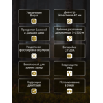 - Увеличение 8х, широко зрително поле, възможност за наблюдение в полумрак