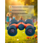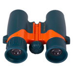 Колелото за фокусиране се намира в центъра, така че можете лесно да регулирате фокуса с дясната или лявата ръка. Корпусът е изработен от пластмаса с гумено покритие, така че е лек, но и доста издръжлив. Този бинокъл се препоръчва за деца над четиригодишна възраст.