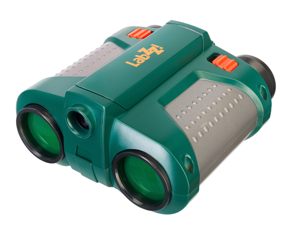 Levenhuk LabZZ NV5 – бинокъл за нощно виждане за деца за наблюдение на увеличените обекти през деня и дори привечер. Приборът ще се окаже удобен при няколкодневна екскурзия или при вечерна разходка със семейството, докато сте на почивка. Липсата на дневна светлина не е проблем: този бинокъл е оборудван с изскачащ прожектор, който ще помогне да видите много интересни неща. Оцветената леща, която се намира под прожектора, прави наблюдаваното изображение да стане зелено, точно както в истинските прибори за нощно виждане, използвани от възрастните.