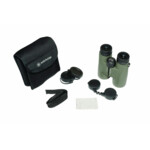 Бинокълът е съвместим с триножници 1/4" (необходим е адаптер), което е полезно при продължителни наблюдения. Гумените чашки на окулярите и регулирането на диоптъра позволяват използването на бинокъла от хора, носещи очила.