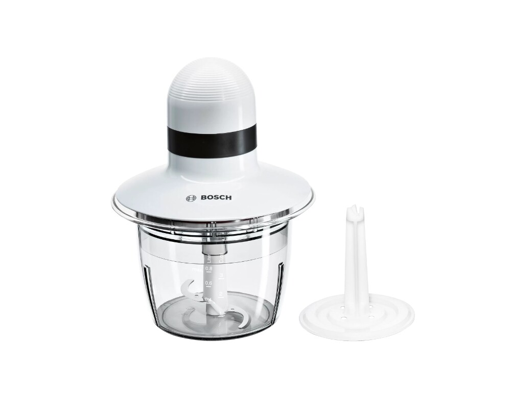 Компактна универсална резачка-чопър за бързо нарязване и смесване, който пести времето ви. Лесно почистване благодарение на възможността за миене на приставките в съдомиялна. Лесно съхранение благодарение на компактния дизайн. Пластмасов съд, подходящ за съдомиялна и микровълнова печка с вместимост 800 мл. Диск за разбиване на сметана или белтъци. Мощен 400-ватов мотор.