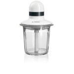 Компактен универсален робот с голям стъклен съд за бързо нарязване и смесване, който пести времето ви Лесно почистване благодарение на възможността за миене на приставките в съдомиялна. Стъклен съд, подходящ за съдомиялна и микровълнова печка с вместимост 1500 мл Допълнителен нож за разбиване на лед. Диск за разбиване на сметана или белтъци. Изключително мощен 550-ватов мотор.