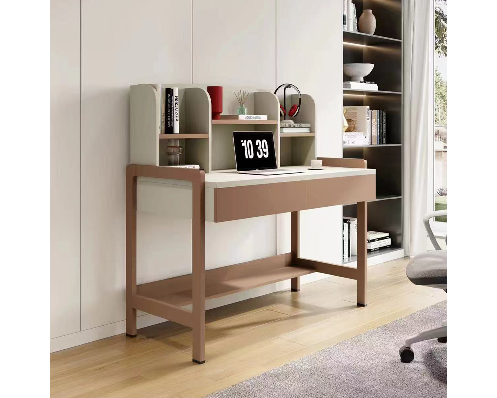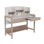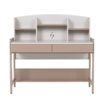 Бюро DONSOL впечатлява със своя модерен дизайн и практичност, съчетавайки две чекмеджета, странични декоративни панели и горна надстройка с рафтове за съхранение. Благодарение на металните си крака с прахово боядисано покритие и функционално разпределение, то е идеално решение за детска стая или домашен офис. Пълна информация за размерите и характеристиките на модела ще намерите в таблицата в таб/поле "Техническа информация".