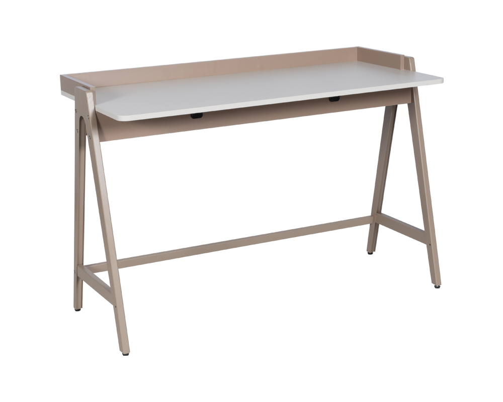 Бюро JAGNA – капучино впечатлява с изчистен дизайн и лека конструкция, подходяща както за детска стая, така и за модерен домашен офис. Елегантният силует съчетава ПДЧ с меламиново покритие и праховобоядисан метал, осигуряващи устойчивост и стилна визия. Просторният плот предлага удобство и свобода на движение, а скосените крака придават стабилност и визуална лекота. Пълна информация за размерите и характеристиките на модела ще намерите в таблицата в таб/поле "Техническа информация".