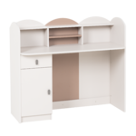 Бюро Pasig впечатлява с оригинален и заоблен дизайн, съчетаващ функционалност и нежна естетика, подходяща за детска или тийнейджърска стая. Множеството ниши и рафтове предлагат организирано пространство за книги, аксесоари или декоративни елементи. Шкафчето и чекмеджето с плавно затваряне улесняват подреждането на учебни пособия и лични вещи. Задната цветна панелна част придава завършен и хармоничен вид. Пълна информация за размерите и характеристиките на модела ще намерите в таблицата в таб/поле 'Техническа информация'.