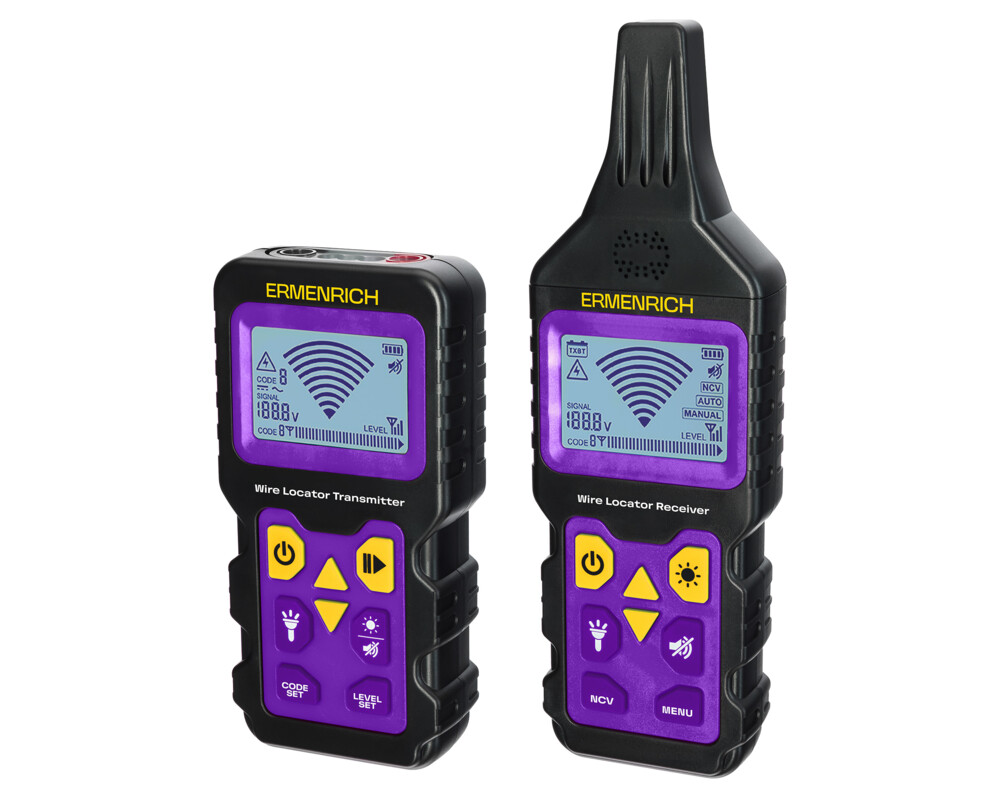 <p>Локатор на подземни проводници Ermenrich Ping SM150 включва предавател, приемник и допълнителни принадлежности. Той се използва за проверка и техническо обслужване на кабелни и електрически мрежи, водопроводи и газопроводи, заровени в земята или намиращи се в стените или в основите на сгради. Уредът може да открива предпазители, скрити проводници и захранващи контакти, както и разпределителни табла, които са били случайно покрити с мазилка при ремонт.</p>