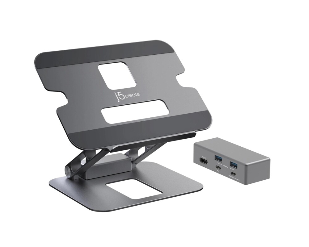 - Поставка за лаптоп с докинг станция j5create JTS327, до 16", USB-C, 4K (ID: 684981)