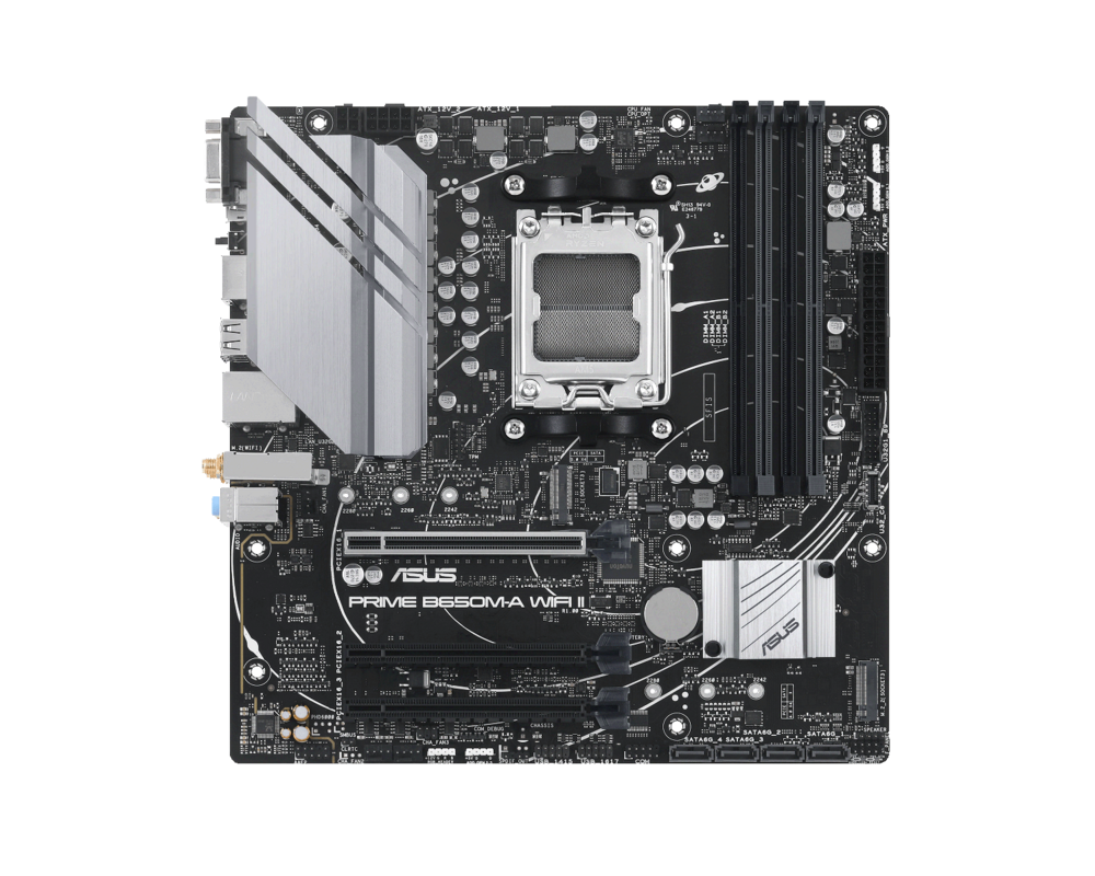 Дънна платка ASUS PRIME B650M WI-FI II socket AM5, 4xDDR5, Aura Sync, PCIe 5.0 SSD Slot P-B650M-A-WF-II