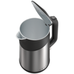 Каната за гореща вода се изключва автоматично, когато водата започне да ври, когато остане твърде малко или никаква вода, или когато се свали от поставката. Освен това електрическият контакт е скрит под гумено уплътнение, което предотвратява навлизането на прах и влага.
