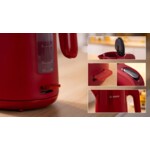 Кана с индикатор за чаши. Вълнуващият дизайн на повърхността с матово-гланцови акценти вдъхва живот на кухнята. Ергономична работа: лесно отваряне на капака с едно докосване на бутон. Индикатор за чаша: помага да спестите енергия и време, като кипнете само необходимото количество. Филтър за варовик: лесен за почистване филтър, който предпазва напитката ви от варовик. Лесна за четене водна скала: перфектна видимост на необходимото количество вода. Тройна функция за безопасност: Автоматично изключване, защита от прегряване, защита срещу кипене и изключване при повдигане.