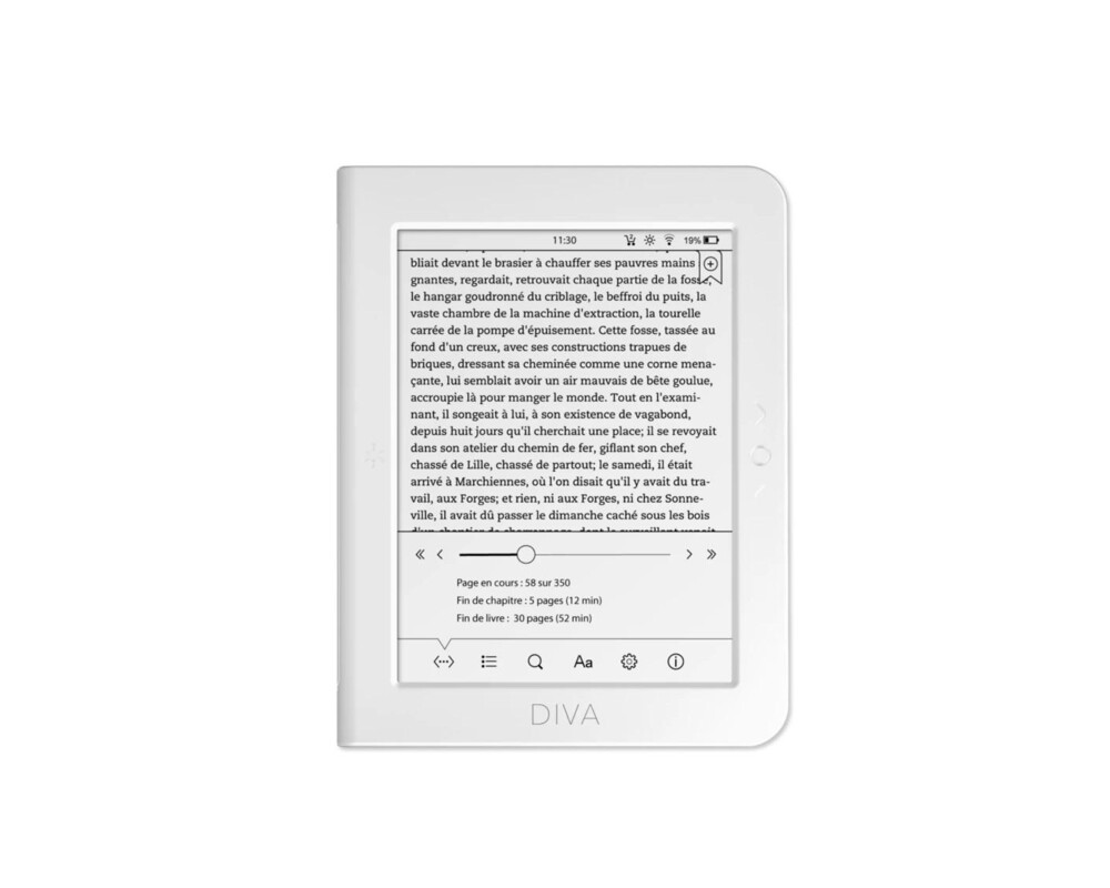 Електронна книга eBook BOOKEEN Diva 6", тъч, подсветка, бял CYBD1F