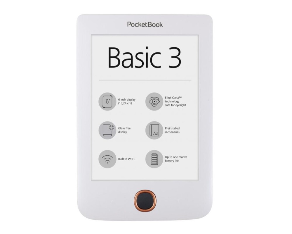 Електронна книга POCKETBOOK BASIC3 PB614-2, 6", БЯЛ POCKET-BOOK-PB614-2-W