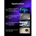 <p>За визуализиране устройството използва CMOS сензор и една Full HD предна камера със 70-градусов ъгъл на преглед. Камерата е обградена от 8 светодиода, което предоставя подобрена видимост в слабо осветени или напълно мрачни пространства. Лещата на камерата е защитена от кратко излагане на водни пръски според стандарта IP65, което прави ендоскопа подходящ за засичане на течове и външна проверка на водоснабдителни системи.</p>