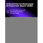 <p>Ermenrich Seek VE50 е индустриален ендоскоп (бороскоп) с 5,5 mm HD камера, която осигурява ъгъл на обзор 70°. Благодарение на гъвкавия 10-метров полутвърд кабел чрез този уред е лесно да се инспектират всякакви труднодостъпни места. Това могат да бъдат вътрешни тръби в помещения, пространства в стените, двигатели с вътрешно горене, товари в контейнер и др. Ендоскопът е ефективен и лесен за употреба инструмент, който може да се използва както у дома, така и за професионални цели.</p>