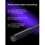 <p>Камерата е снабдена с 6 светодиодни светлини, които осигуряват възможност за изследване на тъмни зони. Лещите и светодиодите са непромокаеми за кратко време (IP67). Ендоскопът се захранва с акумулаторна батерия: С едно зареждане може да се работи 3 часа, а за зареждане се използва постояннотоков мрежов адаптер (не е включен).</p>