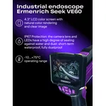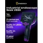 <p>Индустриалният ендоскоп Ermenrich Seek VE60 (бороскоп) с две HD камери Ви дава възможност да инспектирате труднодостъпни места и да правите снимки и видеозаписи. Той осигурява добър изглед: предната камера е с ъгъл на обзора 70°, а страничната камера – 70°. Двете камери са снабдени със светодиодни светлини. Бороскопът е важен инструмент за инспекция на труднодостъпни места, напр. за проверка на състоянието на отточни канали или водопроводи, оценка на домакинските уреди или състоянието на двигателя на автомобила. Той е подходящ също за изследване на стенни конструкции, товари в контейнери и др.</p>