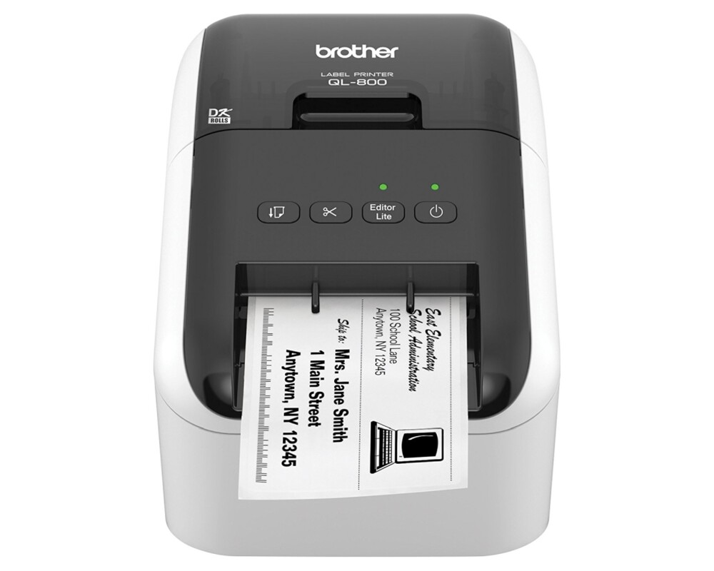 С QL-800 можете да разчитате на бърз печат на етикети от вашия компютър или Mac. Благодарение на вградения софтуер за дизайн етикет P-Touch Editor Lite можете да печатате лесно и бързо - просто свържете към вашия компютър, щракнете върху иконата за стартиране на софтуера и можете да създавате и печатате етикети. Или използвайте разширеният софтуер P-touch Editor, за да отпечатвате баркодове, изображения и да използвате други разширени функции. Можете също така се възползвате от печат на етикети в два цвята - черен и червен, без необходимост от мастило или тонер - идеален начин да се подчертае важната информация върху етикета. Печат на етикети с ширина до 62мм. Вграденият нож ви позволява да печатате зададени от вас размери на етикета (дължина до 1 метър) при използване на непрекъснатите DK ленти. QL-800 е перфектният избор за офиса, когато е нужен надежден и бърз печат на етикети.