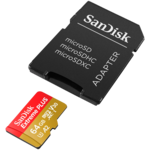 - SanDisk Extreme PLUS microSDXC 64GB + SD Adapter + 2 years RescuePRO Deluxe up to 200MB/s & 90MB/s Read/Write speeds A2 C10 V30 UHS-I U8 (ID: 529572)
